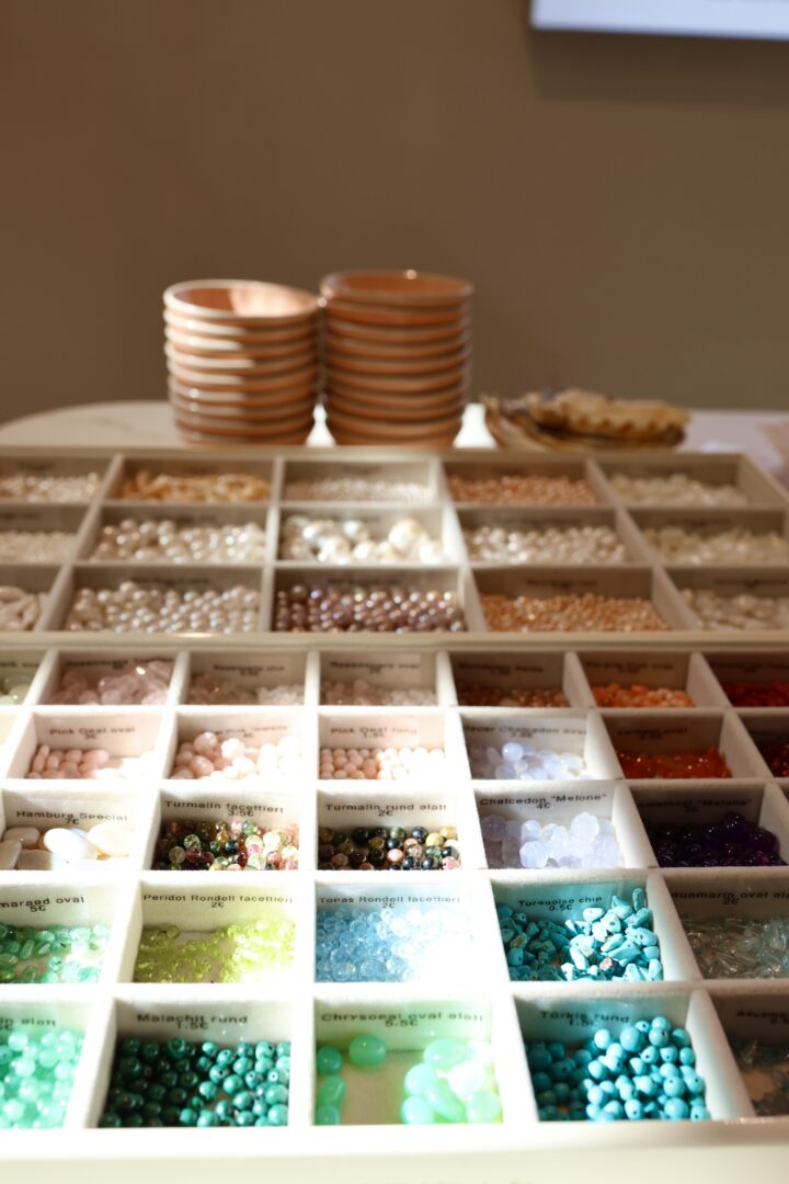 We visited the store ourselves and enthusiastically participated in the experience. We created a necklace, two bracelets, and a pair of earrings, and the time flew by. The creative process truly allows you to let your imagination run wild. The interior is stylish and cozy at the same time – lots of light comes in through the skylights, making everything bright and friendly, especially on autumn or winter days when you feel really comfortable there.