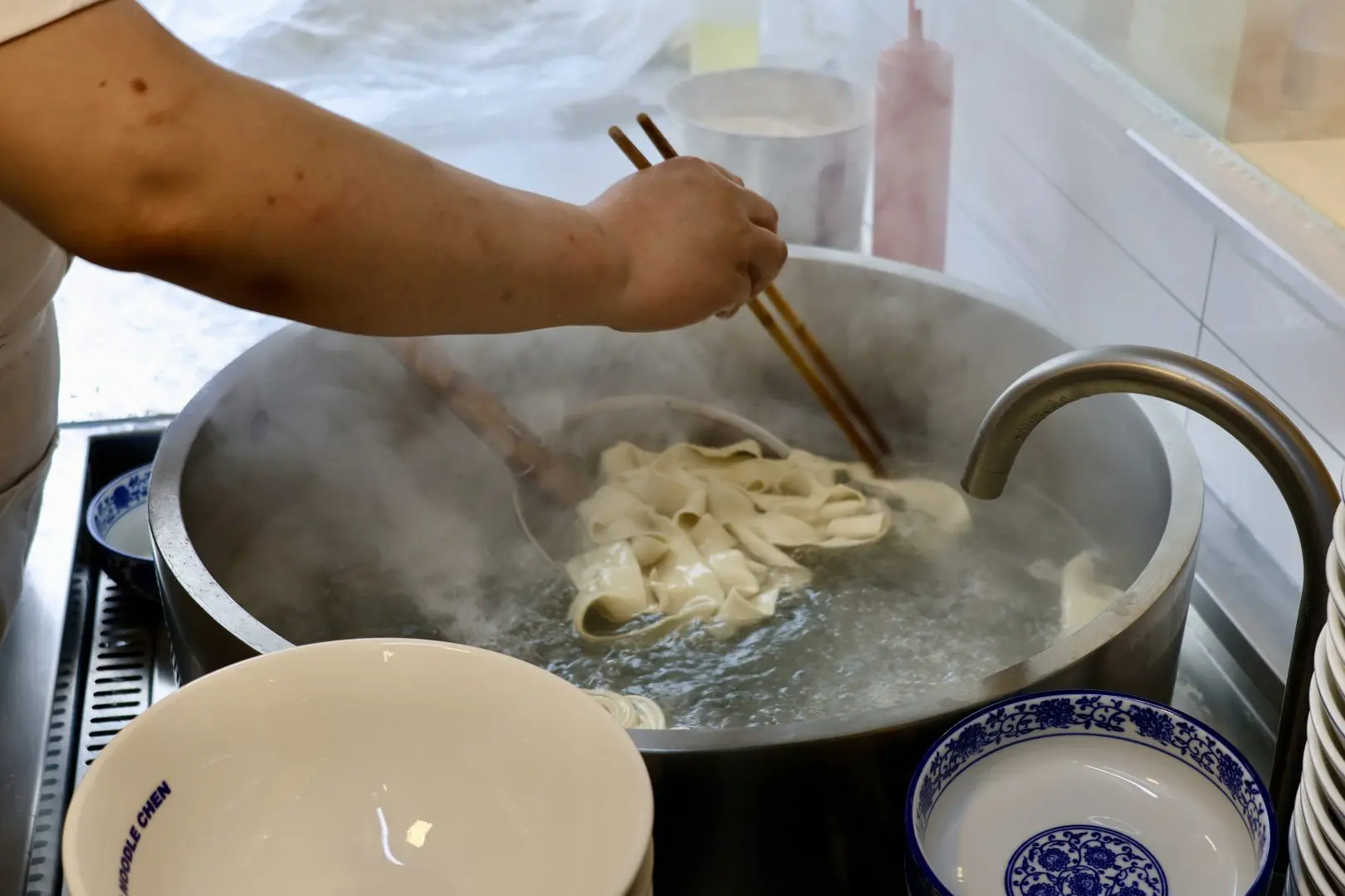 While waiting, we find ourselves lingering — because the open kitchen immediately draws your attention. The noodles aren’t just cooked here; they’re pulled, swung, and folded. It feels like a mix of craftsmanship and performance. You can tell right away: this is real skill.