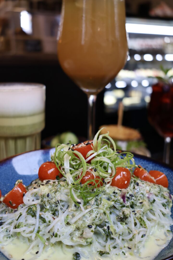 Die Shirataki Nudeln waren anfangs eine kleine Herausforderung, was die Konsistenz angeht – leicht glibberig, etwas bissfest. Aber mit Spinat, cremigem Weichkäse, Tomaten und Knoblauchöl kombiniert, entwickelt das Gericht eine angenehme Tiefe. Es ist definitiv nichts für jeden Geschmack, aber wer offen ist für neue Texturen, wird hier belohnt.